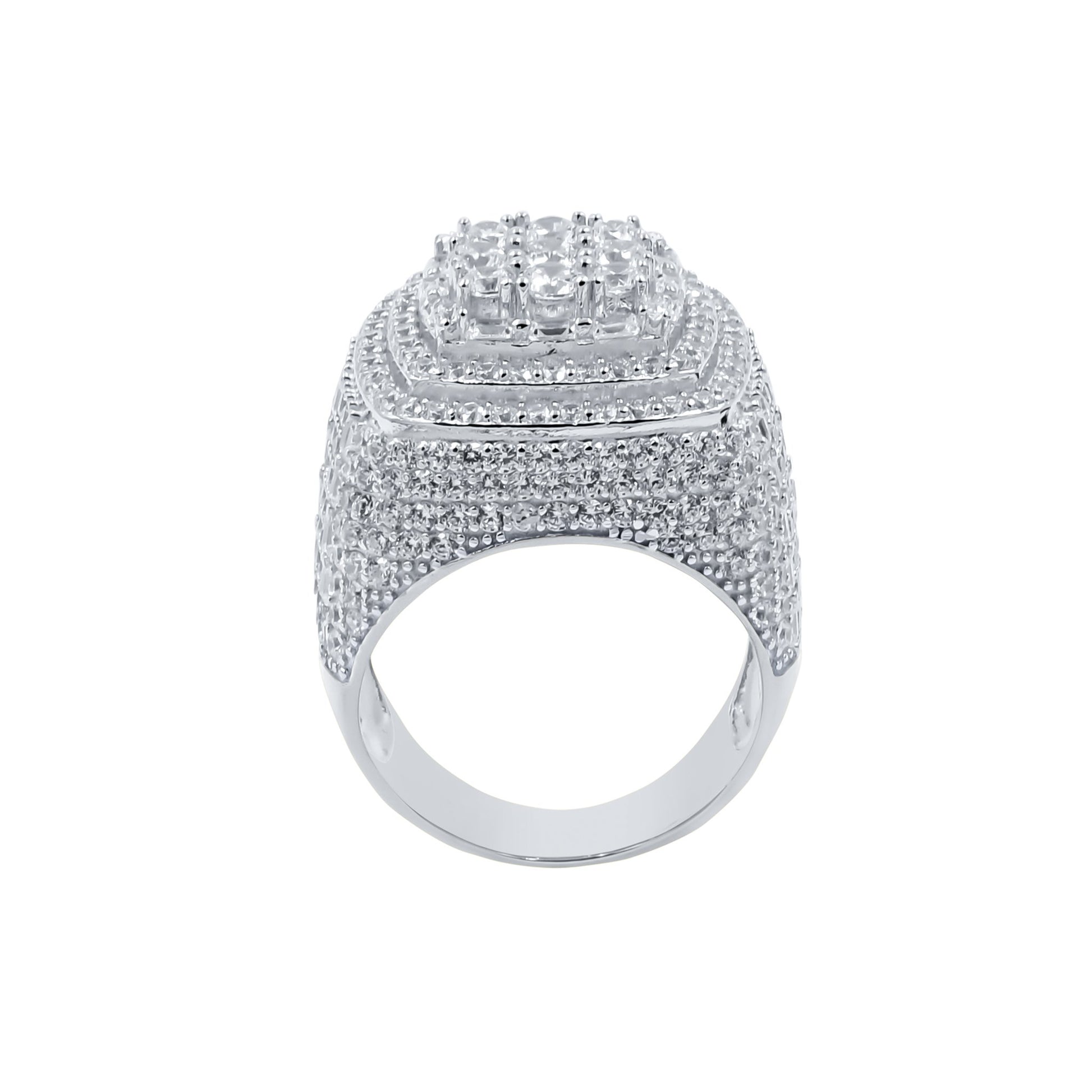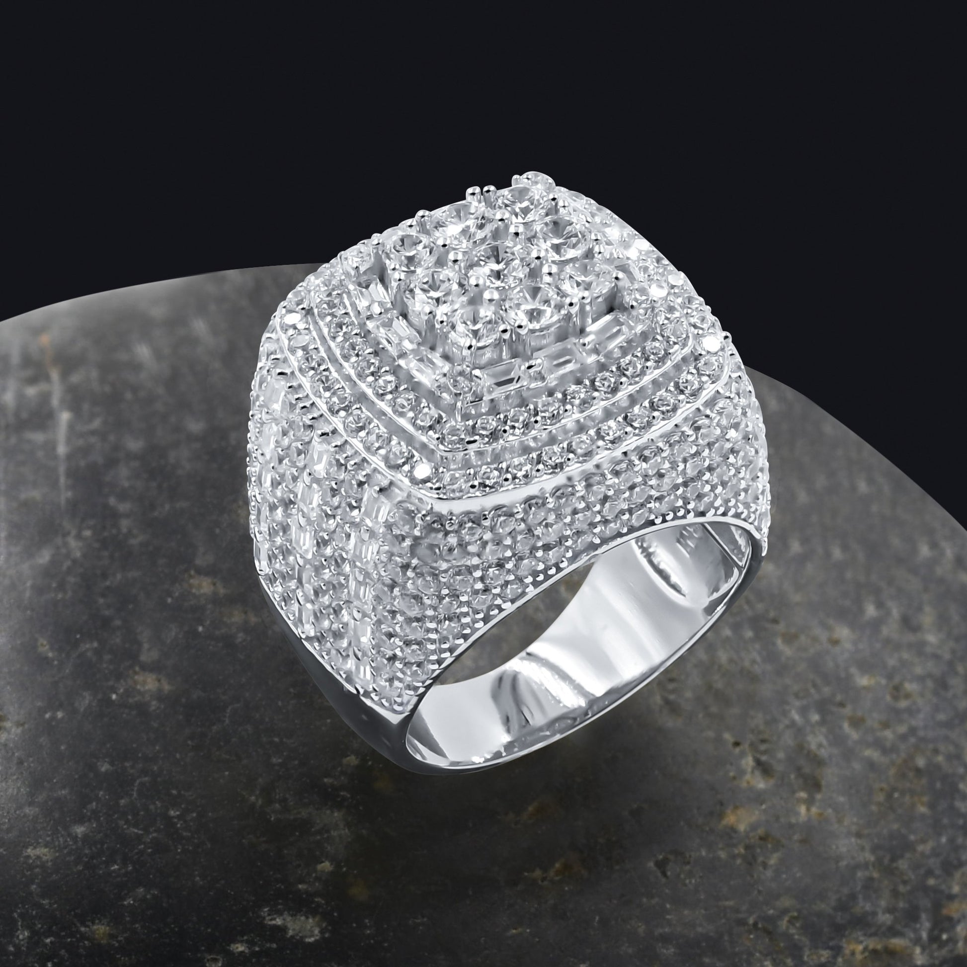 THREE ROW STONE EMBEDED RING // ICED X BAGUETTE WHITE GOLD